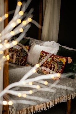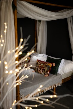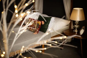Moonlight műtermünk sötét faborítású falával egy romantikus erdei faház hangulatát idézi meg, ahol lágyan ölelnek körbe a sötét színek és az izgalmas textúrák. Baldachinos ágy, fotel, dekor-kandalló és sok kis apró részlet gondoskodik a mesébe illő hangulatról. A nem hétköznapi enteriőr igazán jó választás, ha valami különlegesre, egyedire vágysz.
